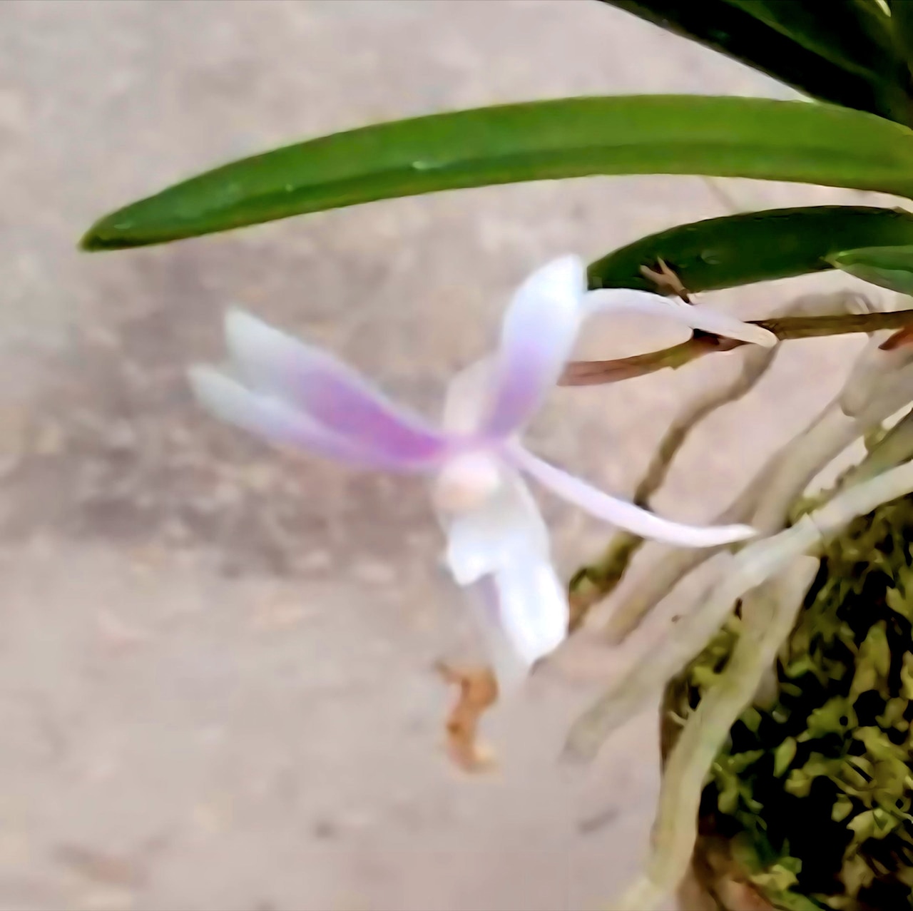 1輪の大きさは、約1.5~2㎝とやや小さめの花です。風蘭全般に言えることですが、葉と花とのコントラストも美しいです。
